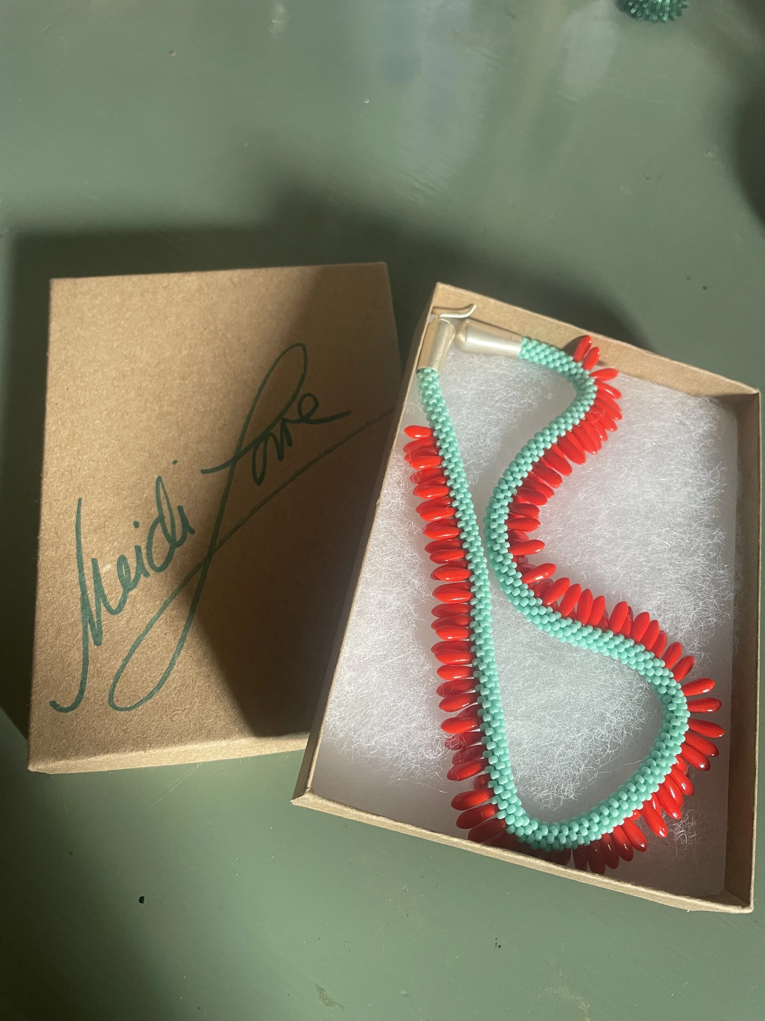On Christmas Day, I opened a gift from from my partner, he could hardly wait for me to see. I knew it was going to be something magnificent, as it had the signature of “Heidi Lowe” on the lid, but what I didn’t know was just how significant this long lost necklace would be. The moment I laid eyes on it, I started to cry. Back in July, I walked into Heidi’s studio, tried it on and knew that I needed to take it home. However, I hesitated, left, walked around a bit and couldn’t stop thinking about it, so I went back to her shop. When I informed her that I wanted to buy this necklace, she said that someone had literally just left her store with the necklace in their hands. WHAT?? What were the odds that of allll the jewelry inside that shop, this mysterious person and I were looking at the same piece, on the same day? Heidi could probably see the sadness in my face and let me know that she could order me another one if I wanted, but as one does…I let it go and honestly just forgot about it.