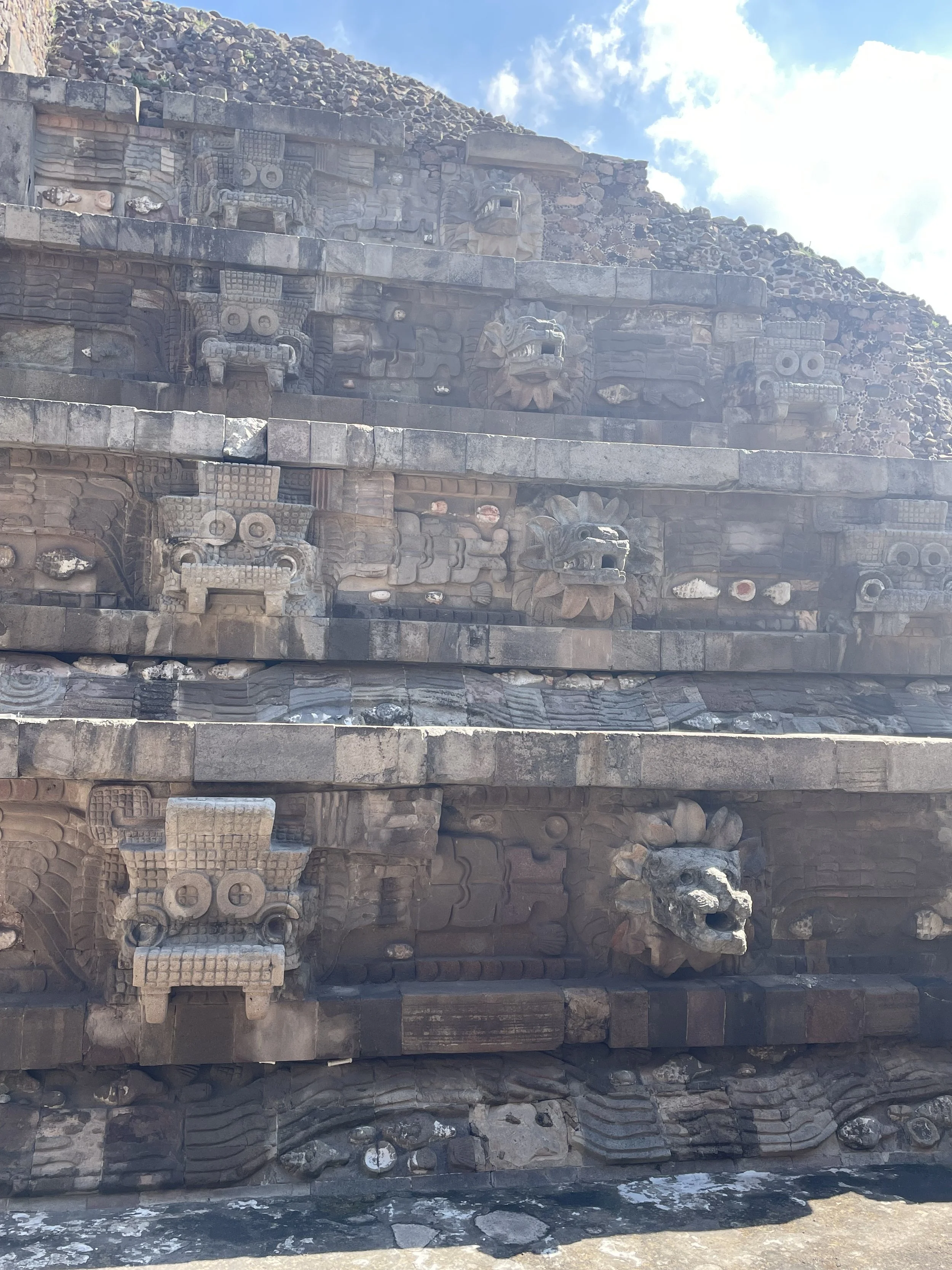 I woke from a dream last night about Quetzalcóatl, a Mayan and Aztec God also known as “the Feathered Serpent.” There’s a sacred temple built just for him and is the only pyramid in Teotihuacán (which translates as “the place where men become gods"), that has stone heads built in. It was also the first temple we saw and got to intimately visit with upon our arrival. While we were visiting the pyramids, my group had a miraculous opportunity to learn more about this specific pyramid. We learned that it is believed to be one of the only pyramids where no human sacrifices were made, as they have not yet found any human remains inside this pyramid. Further more, it is believed that this might have been a place where the ancient people believed all life was birthed and where people came to lay their offerings, engage in rituals and pay their respects to the goddesses. They’ve found ancient artifacts in here that are over 2,000 years old and I might have even got to see one up close and personal…